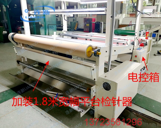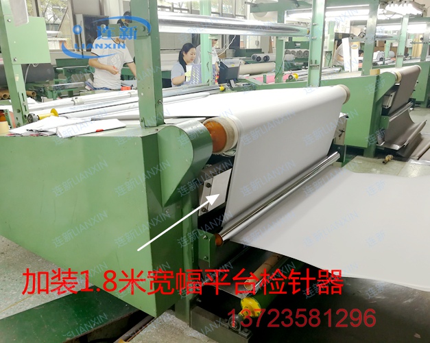 坐落在东莞黄江裕园工业区内的某知名鞋材厂,与我连之新定制多台1.8米宽幅平台检针器,用于加装在其早年台湾进口的皮革跑码机检验机上使用。发现金属自动输出停机信号,控制跑码机停机,以利于及时查找出断针或金属屑等异物!