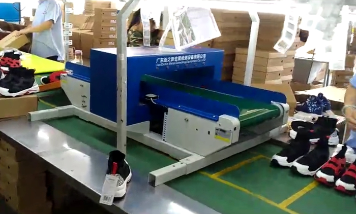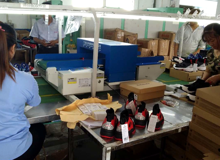 鞋厂入库前检针机使用现场