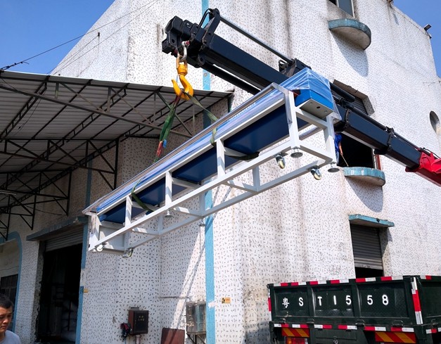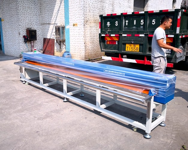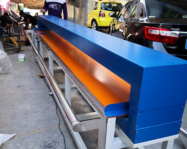 为了配合客户的需求,某威淘汰了原来不达标的检针机,采购了连之新3.4米宽幅龙门式检针机,用于加装在这条棉织品生产线。