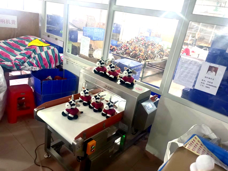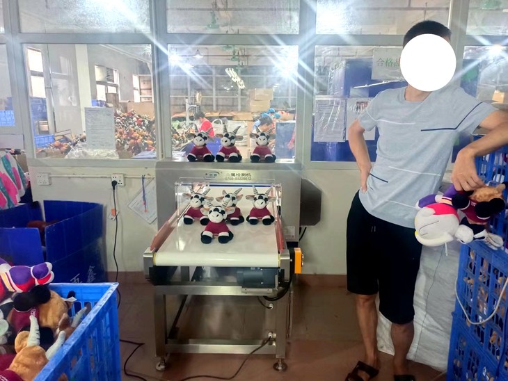 东莞再某毛绒玩具长采购连之新金检机用于毛绒玩具金属异物检测,毛绒玩具因加工生产过程中会有大量的金属异物混入,需要金属检测机检出。以确保消费者不会受到伤害。连之新金检机具有高的检测精度,适合各种玩具检测金属异物、检针。