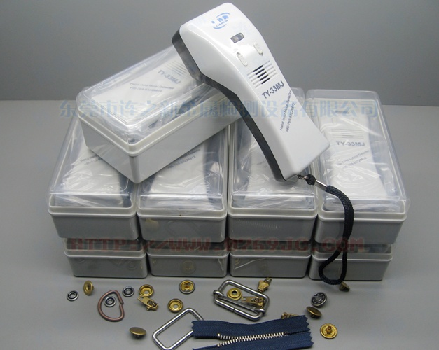 2、可用于五金钮扣等服装服饰配件进行铁磁性杂质检查,高灵敏度相当于所谓8-10级,低灵敏度相当于5-8级检针(高灵敏度检测0.5~0.8mm适合纺织品检查用,低灵敏度检测0.9-1.2mm适合要求低的金属纽扣拉链及鞋材、皮革、钉子探测类检测使用)。