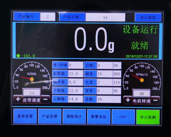 产品经由上一段流水线或者人工上料后输送进入到“检重秤”。