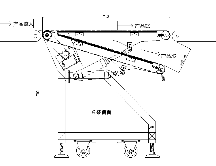 6、产品尺寸:712*636*700 输送带宽480mm