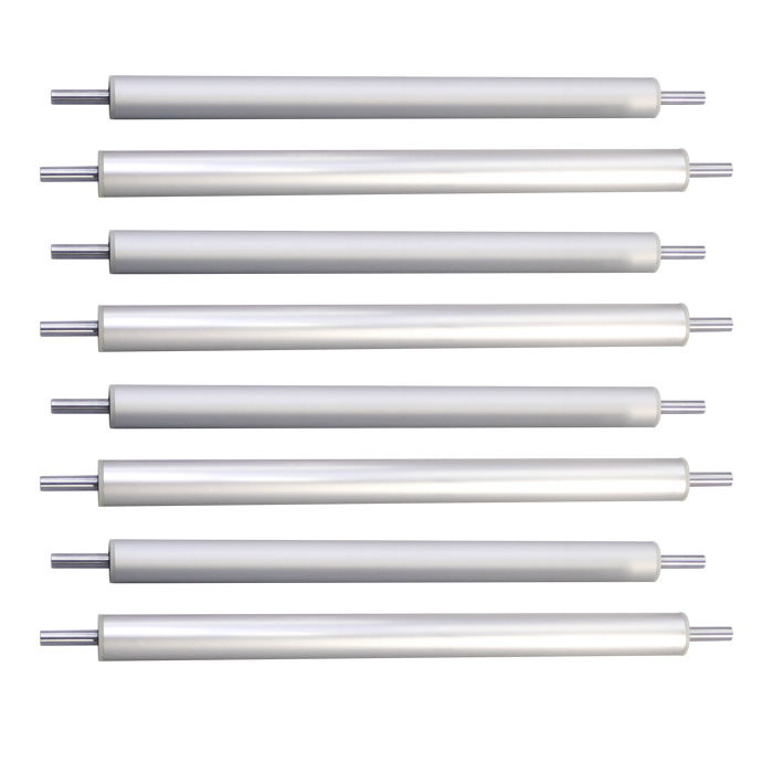 检针机滚筒 有铝合金滚筒和环氧滚筒黄色非金属材料两种,请确认您的滚筒是那种材质!检针机滚筒是一种圆形传送带主要部件之一,通常由检针机滚筒轴心,滚筒轴体,和轴承共同组成。因检针机的特殊性要求,检针机滚筒必须采用非铁材质的材料制作,这里采用的检针机滚筒滚体材质为铝合金制作,确保接触皮带的表面不会有铁粉污染到检针机皮带上!