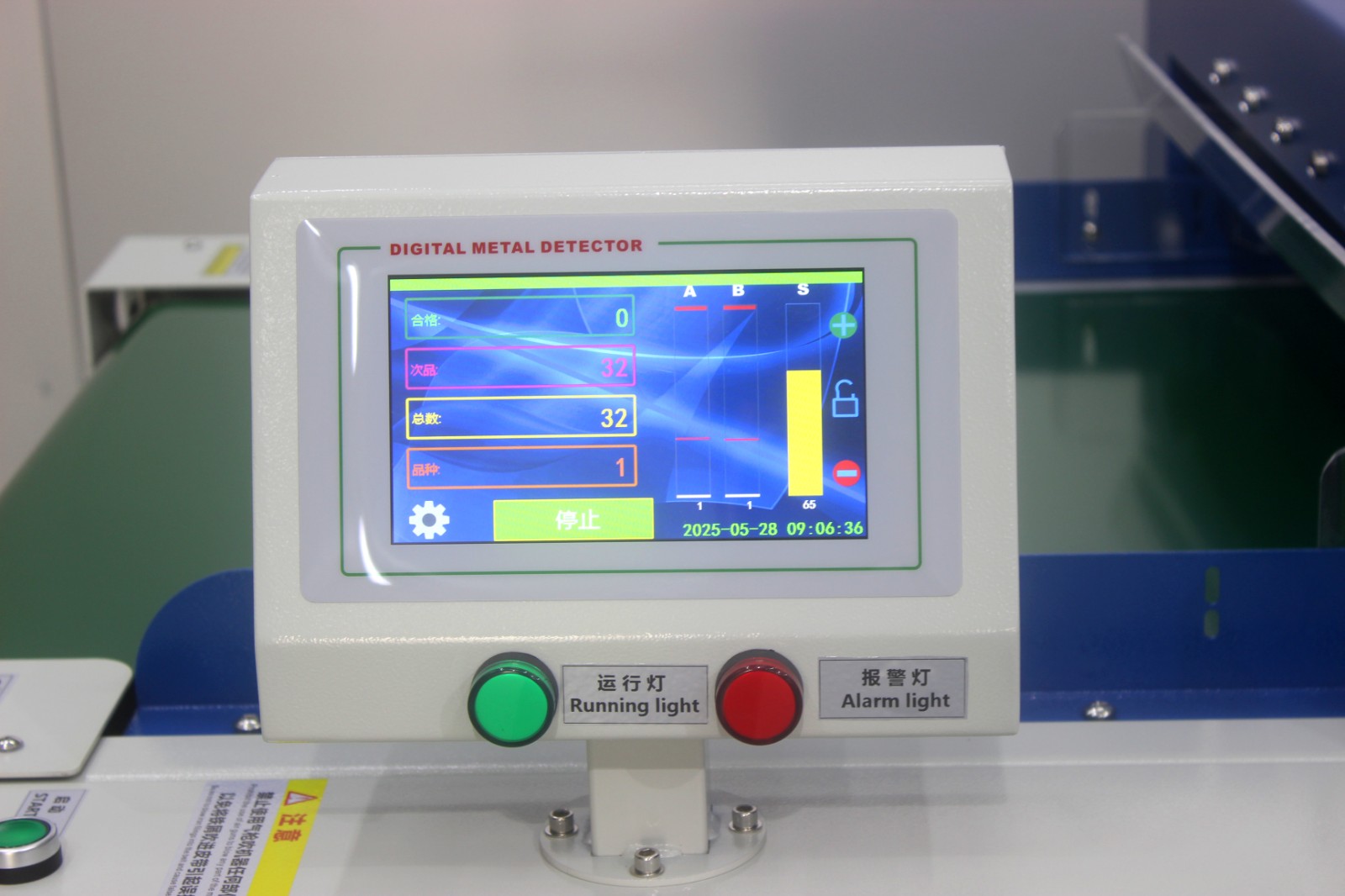 ■ 超强抗干扰电脑芯片集成电路,上下探头双排路64组感应器,优于传统双探头检针机;